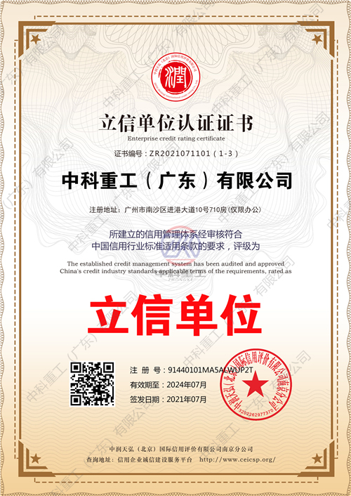 中科重工榮獲“全國企業信用信息數據庫”、“誠信供應商等級證書”、“重服務守信用企業認證證書”、“質量服務誠信單位認證證書”等,中科重工將制造業與互聯網進行融合創新,加快推動產業鏈供應鏈優化升級。