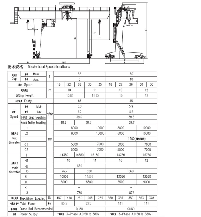 二、產(chǎn)品簡(jiǎn)圖與技術(shù)規(guī)格(32/5t-50/10t)