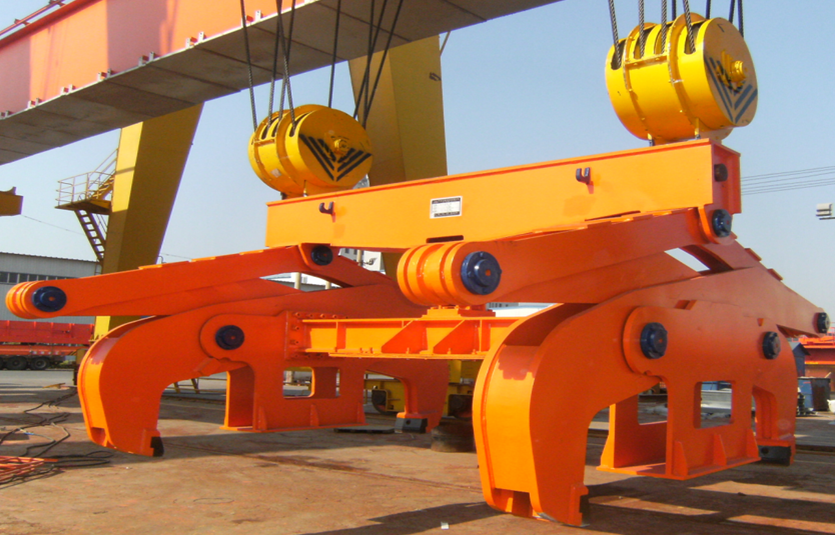 7、 雙吊點(diǎn)夾鉗吊具靠自重鎖緊,開閉器定位,自動(dòng)實(shí)現(xiàn)鉗口的開閉工作,不消耗電能,有利于環(huán)保。結(jié)構(gòu)簡單,制造方便,價(jià)格便宜,外形尺寸小,自重輕。